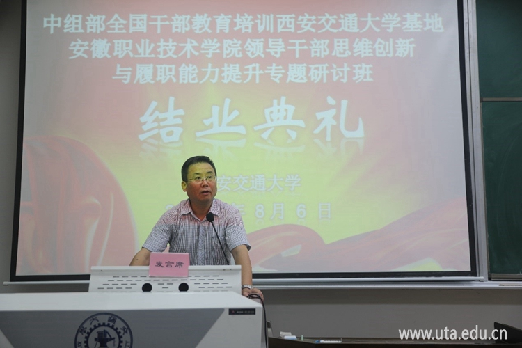 8月2日上午,西安交通大学党校常务副校长、西安交通大学干部教育培训基地主任、党委组织部副部长高彦出席开班式并致欢迎词,党委书记亓四华作开班动员讲话。亓四华指出,本次出省举办培训班,旨在利用培训基地的优质资源,进一步提升学院领导干部管理水平和履职尽责能力,为促进学院各项事业发展提供组织保证。开班式上,他对全体领导干部提出三点要求:一要增强使命感,充分认识到学习培训是干部队伍建设的迫切需要,是学院发展的迫切需要,是个人素质提升的迫切需要;二要增强紧迫感,努力做到“勤学”、“善思”、“力行”,切实注重学习的实效性;三要增强责任感,积极维护培训纪律的严肃性。