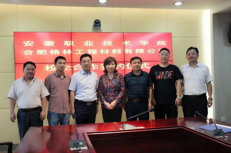 (实训中心通讯员 吴家奎)9月30日下午,我校与合肥格林工程材料有限公司校企合作签约仪式在九楼会议室举行。合肥格林工程材料有限公司董事长王国庆,生产副总张利国,财务总监李世友,党委委员、副校长史锋,建筑工程学院党政负责人等出席。建筑工程学院副院长蒋庆华主持仪式。