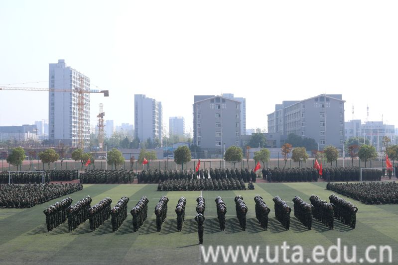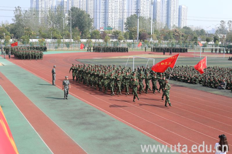 运动场上,军乐激昂,同学们以院部为单位,进行了分列式汇报表演。各方阵的同学们意气风发、口号嘹亮、步伐矫健、军姿威严,展现了6000余名新生良好的军事素质和奋发向上的精神风貌,赢得了全场的阵阵掌声与喝彩。