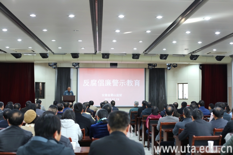 本网讯(主题教育宣传组通讯员 袁涛)为进一步推进“不忘初心、牢记使命”主题教育向纵深推进,推深做实“三个以案”警示教育,11月19日下午,学院党政领导班子成员、中层以上干部及纪检监察处全体工作人员共70余人赴安徽省蜀山监狱开展警示教育活动。