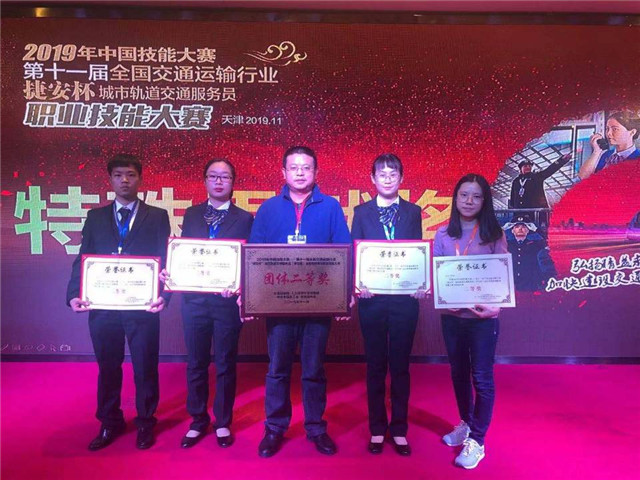 本网讯(铁道学院通讯员 唐戍)2019年11月18日至22日,第十一届全国交通运输行业“捷安杯”城市轨道交通服务员职业技能大赛全国总决赛在天津梅江会展中心举行。来自全国39家城市轨道集团公司78名职业组选手和151所职业院校370名学生组选手参加了此次全国总决赛。亚星游戏网铁道学院参赛选手在左美生、聂化东、李清涛、董添、董其尉几位老师的带领下敢打敢拼,在强手如林的比赛中积极应战、不负众望,出色完成了比赛,获得佳绩。其中李孝哲、韩晓雨和杨邦辉三名同学在城市轨道交通服务员运营管理赛项中取得全国第八名的好成绩,荣获了团体和个人二等奖;胡传争、刘慧敏和谢齐权三名同学在车辆控制赛项比赛中取得团体和个人三等奖。