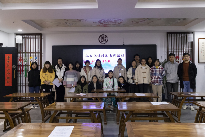 随后,应部分对民歌有浓厚兴趣的同学邀请,在徽文化艺术研究中心国学教室举行了小班课堂传唱,经现场教授,参与学习的20名同学已经掌握徽州民歌《四绣红绣鞋》演唱技巧。