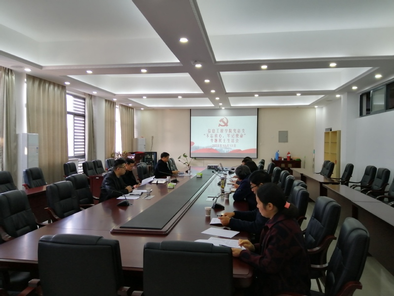 本网讯(信息工程学院通讯员 吴君莲)根据学院“不忘初心、牢记使命”主题教育部署,12月13日上午,信息工程学院党总支在信息401会议室召开“不忘初心、牢记使命”专题民主生活会。党委副书记、院长孙敬华,人事处处长叶鸽、主题教育宣传小组成员袁涛到会指导,学院领导班子及总支委员参加会议,会议由信息工程学院党总支副书记李洪主持。