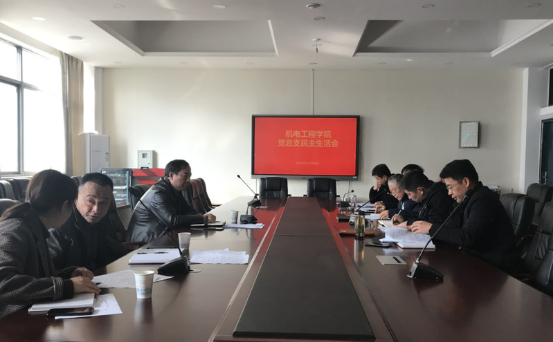 本网讯(机电工程学院通讯员 杜江淮)根据学院党委统一部署,12月9日上午,机电工程学党总支在机电414会议室召开“不忘初心、牢记使命”主题教育民主生活会。党委委员、基础教学部主任马纯,工会主席陈纲和指导组成员班苑苑到会指导。会议由学院党总支副书记胡坤主持。
