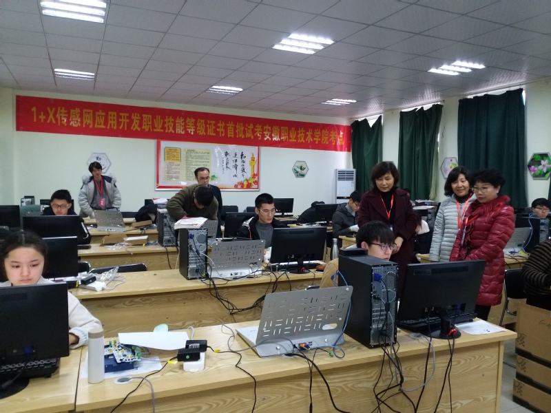 本网讯(信息工程学院通讯员 窦飞)1月4日,2020年全国首批传感网应用开发“1+X”职业技能等级认证考试我校考点在信息工程学院五楼实训室顺利开考,共有30名我校学生和6名外校学生参加认证考试。党委委员、副校长史锋亲临考试现场指导工作。实训中心负责人冯本茹,信息工程学院负责人李京文现场督考。