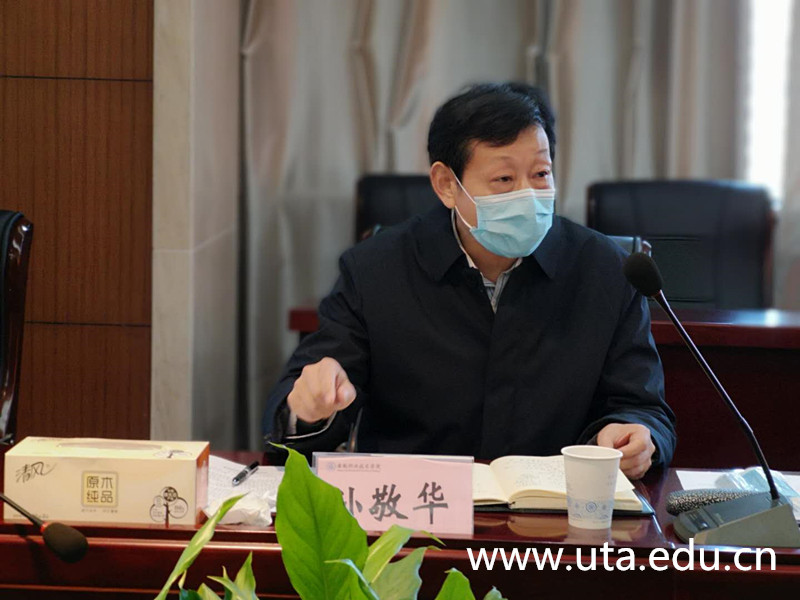 亓四华首先传达了全省教育系统新型冠状病毒感染肺炎疫情防控工作视频会议精神,并就学院做好下一步疫情防控工作提出了如下要求:一是切实扛起政治责任。时值疫情控制严峻时刻,师生身体健康和生命安危全大于天,学院各级党组织和党员干部要充分发挥战斗堡垒和先锋模范作用,敢于担当政治责任,防止疫情向校园输入和扩散、守护师生安康;二是切实落实疫情防控方案。学院各部门、各二级学院要把疫情防范做实做细,做到六个到位:疫情摸排到位,封闭管理到位,教学安排到位,宣传教育到位,后勤管理到位,条件保障到位;三是统筹做好开学后的各项准备工作。学院各部门、各二级学院要从细小着眼、大处统筹,进一步细化开学工作方案。