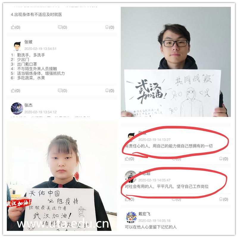 课上,学院各职能部门、各二级学院负责人,全校辅导员、班主任及思政教师,利用腾讯课堂、腾讯会议、QQ直播等课堂教学新模式,对全校师生创新性地开展集中疫情宣传教育。本次课程主要围绕病毒突袭2020,疫降华夏大地;阖家团聚时,全民共同战“疫”;与病毒较量,“中国脊梁”用行动点燃胜利希望;同时间赛跑,“中国速度”分秒必争赛出奇迹;依法治疫,守法抗疫;理性面对疫情、坚持制度优势,让党的旗帜飘起来六个方面展开,展现了在党中央的统一领导、统一指挥下,充分发挥“中国之治”优势,全国人民同舟共济,携手战“疫”,凝聚起战无不胜的磅礴力量。两万多师生线上充分互动,纷纷表示抗击疫情没有旁观者,要听从部署、服从指挥,以自身实际行动为打赢疫情防控阻击战作贡献。