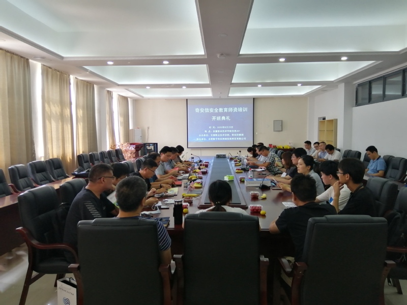 本网讯(信息工程学院通讯员 胡春雷)8月23日下午,由学院和奇安信集团主办、合肥数字奇安协办的“奇安信安全教育师资培训班”开班典礼在信息楼四楼会议室成功举行。党委委员、组织部部长杨林国出席开班典礼。奇安信集团安徽分区教育行业总监李瑞锋、合肥数字奇安总经理李亚、信息工程学院副院长李京文、党总支副书记李洪及来自省内、省外兄弟院校的全体培训学员参加了开班典礼,典礼由李京文主持。
