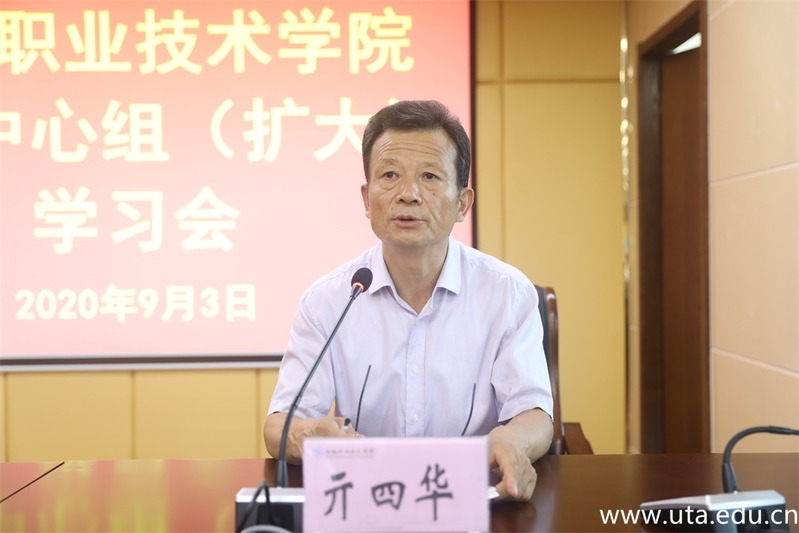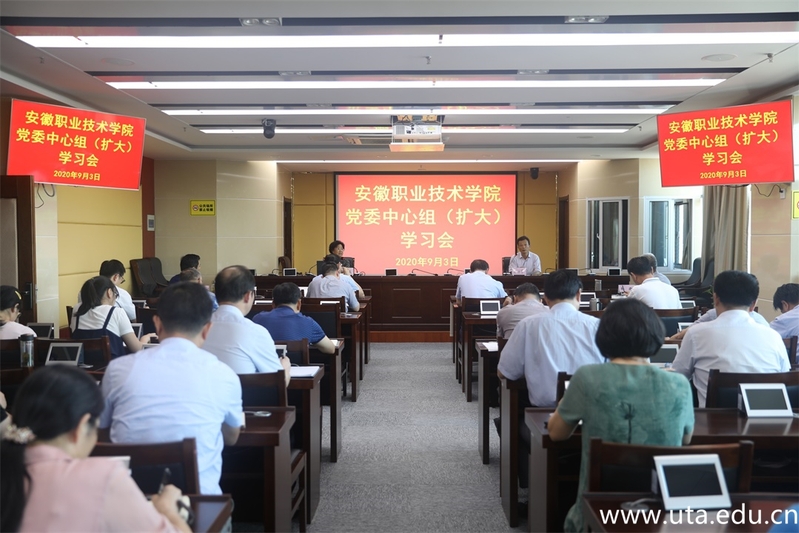 本网讯(党委宣传部通讯员 孙静)9月3日至4日,学院在图文信息中心九楼视频会议室召开党委理论学习中心组扩大会议,重点围绕习近平总书记考察安徽重要讲话精神开展集中学习。党委领导班子成员亓四华、孙敬华、郭淼、陈行、马纯、杨林国及中层以上干部参加会议。会议由党委书记亓四华主持。