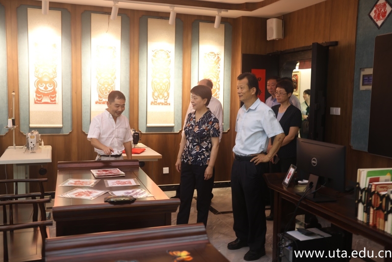 在学院徽文化中心,王翠凤副省长高度评价了我校学生的文创作品,对学院开展的非遗专家进校园,传统文化进教材、进课堂表示赞赏。她希望学院各学科课程都要结合课程特点融入中华优秀传统文化内容,要重视中华优秀传统文化教育和传统经典、技艺的传承,要把中华传统文化教育贯穿于学院教育工作的各个环节,进一步引导学生学习民族历史,了解民族文化,弘扬民族精神,增强学生民族自豪感。