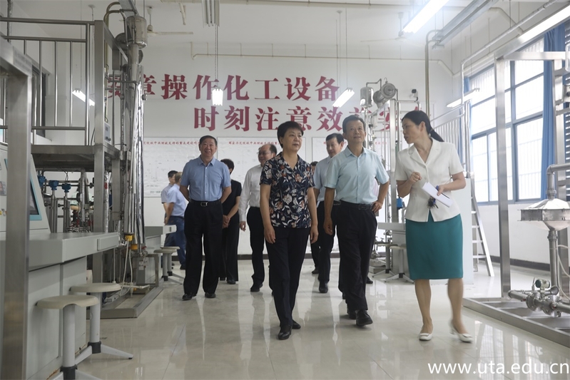 王翠凤副省长首先来到学院化工实训楼考察调研了化工技术实训基地,听取了环境与化工学院负责人关于化工专业及师资队伍建设、化工技术实训基地建设、实训教学开展等情况的汇报。她充分肯定环境与化工学院的办学成果,对于化工安全实训基地连续八年承办安徽省化工类职业技能大赛的社会服务能力给予赞誉。