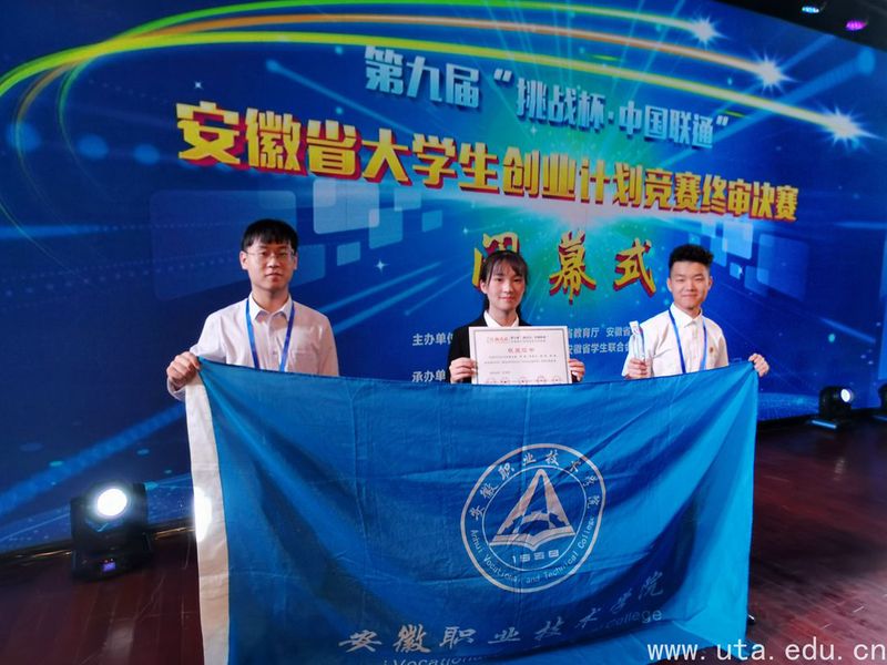 本网讯(院团委通讯员 石可)近日,由共青团安徽省委、安徽省教育厅、安徽省人力资源和社会保障厅、安徽省科学技术协会、安徽省学生联合会主办,安徽工程大学承办的第九届“挑战杯·中国联通”安徽省大学生创业计划竞赛决赛在芜湖落下帷幕。我校参赛作品经过省赛网评、复赛、决赛终审,取得了金奖1项、银奖4项、铜奖1项,以职业院校赛道总积分第二的成绩,荣获挑战杯赛事“优胜杯”奖项。