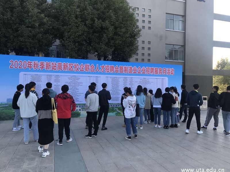 本网讯(学生处通讯员 唐笑林)10月24日,由我校和新站区人社局组织的2021届毕业生新站区企业专场校园“双选会”在教学A、B楼顺利举办。新站区54家企业参会,提供招聘岗位1878个,近2500名毕业生参加招聘,1245名毕业生和用人单位达成了初步就业意向。
