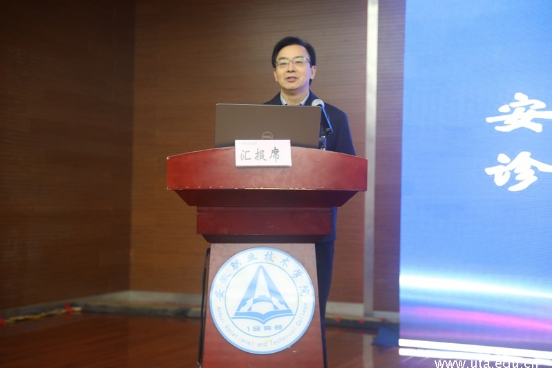 在汇报会上,孙敬华从顶层设计与实施、诊改实践与探索、诊改成效与不足、诊改思考与体会四个方面详细汇报了学院诊改工作的开展与实施情况。