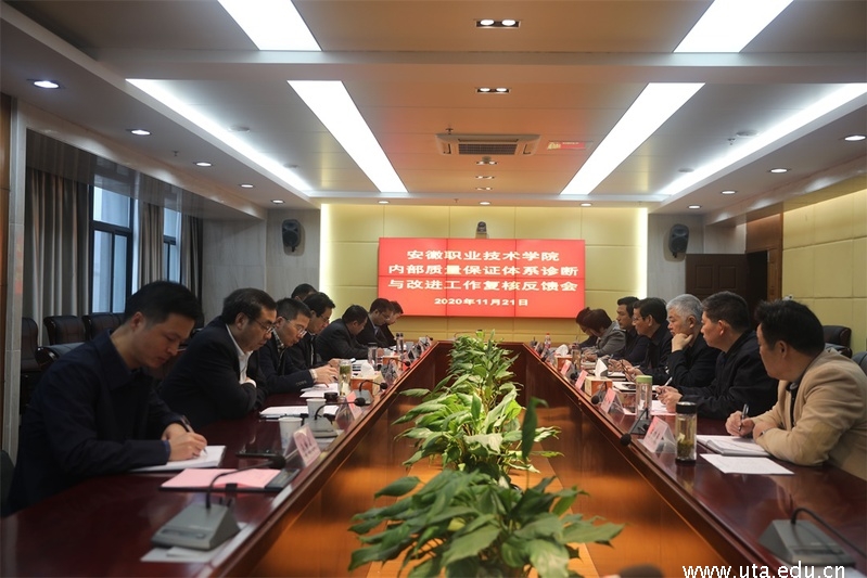 本网讯(质量管理处通讯员 谢暴)11月19日至21日,受省教育厅委托,以安徽省教育厅高教处檀俊副处长为组长、安徽商贸职业技术学院校长李忠教授为副组长的省高职院校内部质量保证体系诊断与改进现场复核专家组一行9人来我校开展教学诊改现场复核工作,听取我校内部质量保证体系诊断与改进工作汇报,分别开展了领导访谈、教师座谈、学生座谈、各层面负责人访谈、查阅资料、数据分析、取样分析、教师和学生代表访谈、查看诊改平台等环节工作对学院教学工作诊断与改进进行了认真、详细的现场复核,并就我校诊改复核工作情况进行了反馈。