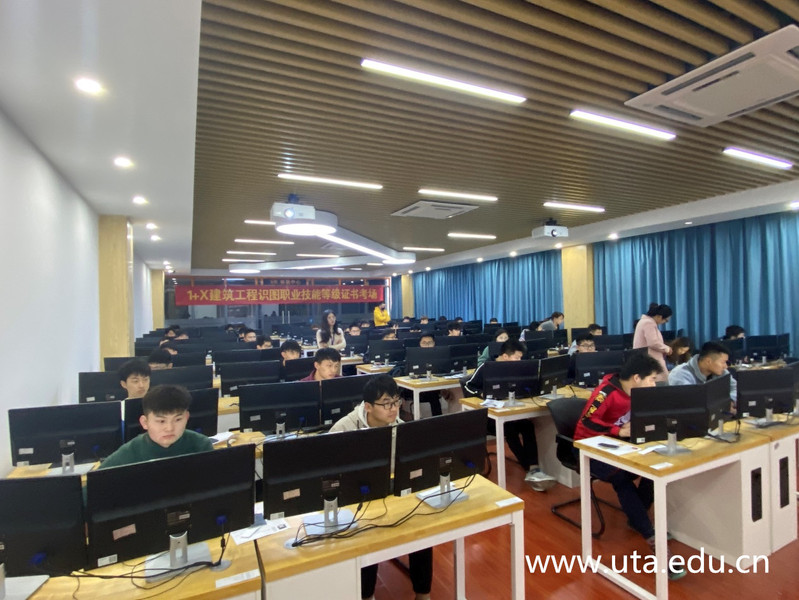 本网讯(建筑工程学院通讯员 柳周 实训中心通讯员 吴家奎)11月21日, 1+X建筑工程识图职业技能等级(初级)证书首次考试在建工楼409实训室进行,来自建筑工程学院建筑、造价、装饰专业的共42名学生参加此次考试。党委副书记、校长孙敬华亲临现场指导工作,实训中心负责人冯本茹、建筑工程学院负责人蒋庆华在考试期间进行了巡考。