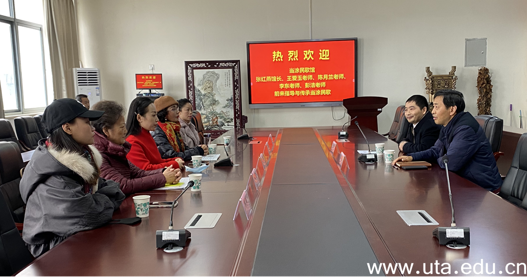 本网讯(管理学院通讯员 卞丛茹)11月27日上午,当涂县民歌艺术馆馆长张红燕、王爱玉、陈月兰、张红燕、李东、彭洁等一行来到我校考察交流。