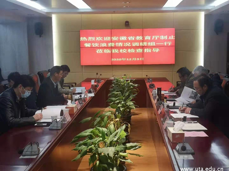 本网讯(后勤管理处通讯员 高立克) 为深入贯彻落实习近平总书记关于制止餐饮浪费行为的重要指示精神,根据教育部工作部署和《安徽省教育厅关于开展学院餐饮浪费情况自查自纠专项工作的通知》要求, 12月9日上午, 省教育厅制止餐饮浪费情况调研组第五组一行四人莅临我校检查指导厉行节约制止餐饮浪费工作开展情况。党委副书记、纪委书记郭淼、后勤管理处处长陶新南等相关负责人热情接待了调研组一行。