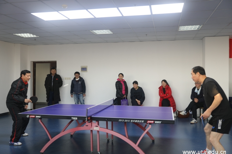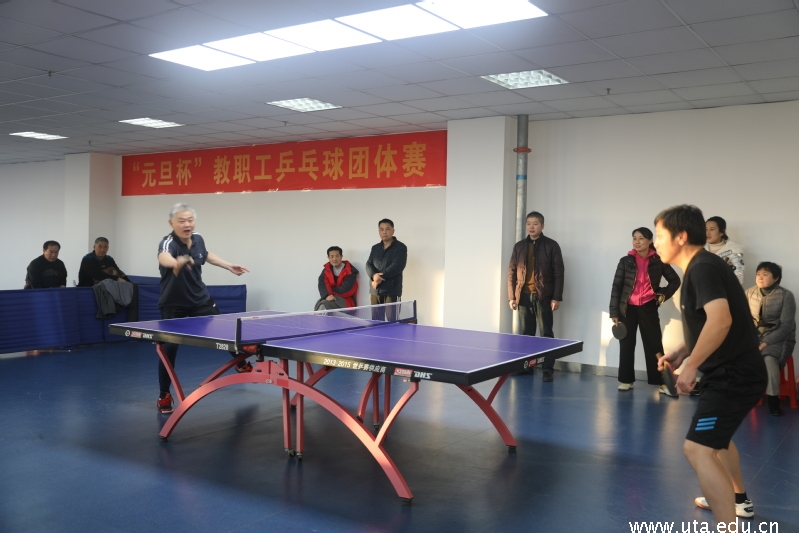 本网讯(校工会通讯员 贾亮亮)12月30日下午,我校第十四届教职工乒乓球团体赛在图文信息中心八楼活动中心顺利举行,共有十五支代表队参加比赛。党委副书记、院长孙敬华,党委副书记、纪委书记郭淼,党委委员、副校长陈行、党委委员马纯亲临活动现场,积极参与比赛、鼓舞士气。