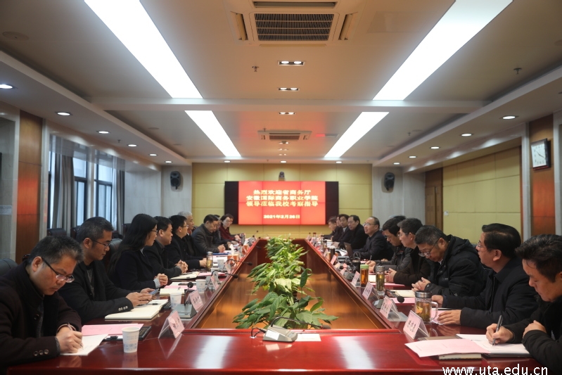 本网讯(校办通讯员 谢英姑)2月26日,省商务厅党组成员、副厅长、安徽国际商务职业学院党委书记杨本清,安徽国际商务职业学院党委副书记、校长张卿一行12人来我校考察交流,党委书记李方泽、校长孙敬华热情接待来访客人一行。学院领导班子成员、相关部门主要负责人参加座谈。