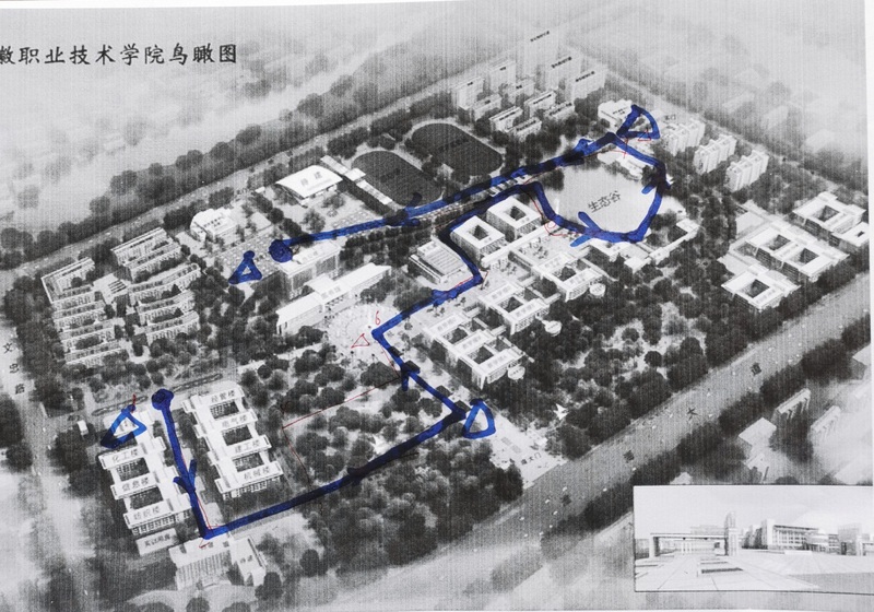 三、活动安排:活动15:00开始,出发点设在西门国旗台,线路(见附图):从学院西门国旗台(领券点)向南出发,沿环路向东至南大门后向北,到达广场国旗后向东至大礼堂方向,左传向北至环路后东行,绕景观湖一周后,从东北出口处(领券点)折返图文信息中心门口,交回经本人签名的两张活动券,并在本人所在分工会的签名表上签到。