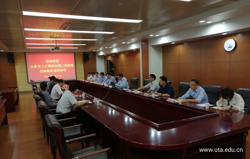 本网讯(科研处通讯员 窦静)5月11日下午,合肥市人大常委会第二检查组副组长戴中保等一行莅临我校检查调研指导工作。新站区市场监督管理局负责同志、党委副书记、院长孙敬华及科研处、人事处等相关部门负责人参加调研汇报会。汇报会由孙敬华主持。