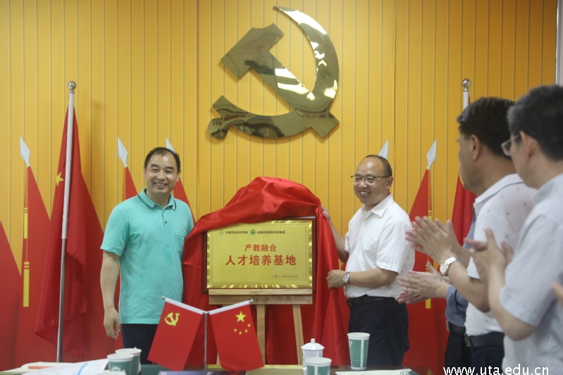 本网讯(管理学院通讯员 白花蕊)为推进产教深度融合、校企协同育人工作,6月10日上午,学院与安徽岸香国际控股集团有限公司共建“产教融合 人才培养基地”揭牌仪式在安徽岸香国际控股集团有限公司举行。学院党委书记李方泽,党委委员、副校长陈行,党委委员、组织部长杨林国,办公室副主任陈晓春,机关党委副书记黄学文,管理学院院长刘玉杰、党总支副书记李瑞勇,安徽岸香国际控股集团有限公司董事长黄保锁,公司董事、总裁黄浩,公司董事朱晓琳、蒋波等参加揭牌仪式。