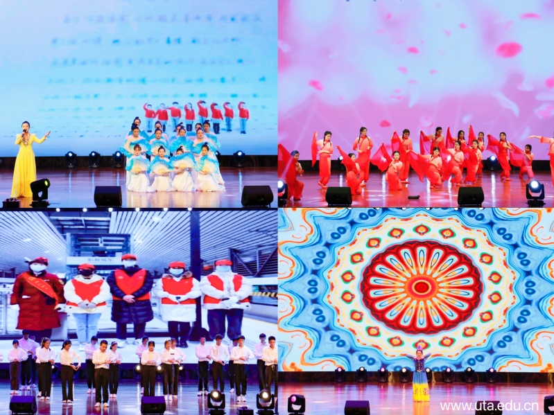 整个颁奖晚会精彩纷呈,师生同台献艺,现场气氛热烈。晚会在歌伴舞《我的祖国》中拉开帷幕,通过“百年峥嵘,不忘初心”“资助扶贫,成就梦想”“职教有我,奋进远航”三个篇章,以舞蹈、歌曲、朗诵、相声等丰富多彩的表演形式,讴歌了中国共产党百年光辉历程,展示了我校资助育人工作取得的丰硕成果。其中,《为了新中国》《山河已无恙》《党在我心中》歌颂了中国共产党人艰苦卓绝的奋斗历程;《特殊的礼物》《让世界充满爱》《诚信是心底的茶香》《感恩的心》表达了受助学生对国家资助政策的感恩之情;《励志》《强国一代有我在》《歌唱祖国》唱响了全体师生践行使命勇于担当,以优异成绩献礼建党100百周年的决心。