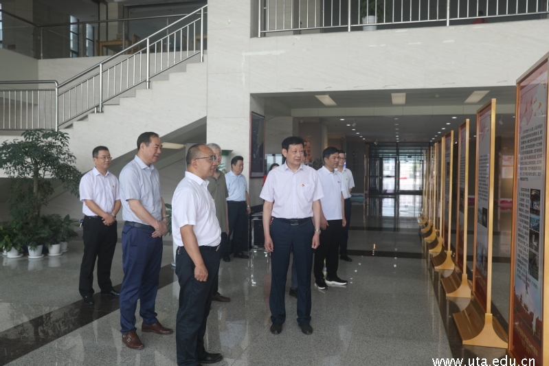 会前,党委班子成员在图书馆一楼大厅参观了建党100周年党史图片展。