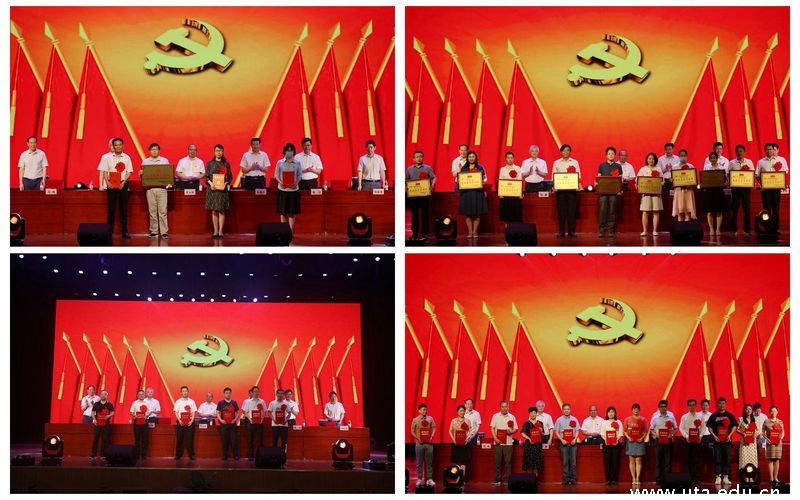 (校领导为先进基层党组织、优秀共产党员、优秀党务工作者颁发奖牌和荣誉证书)