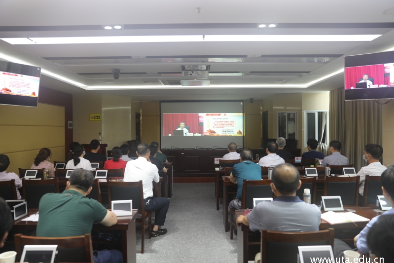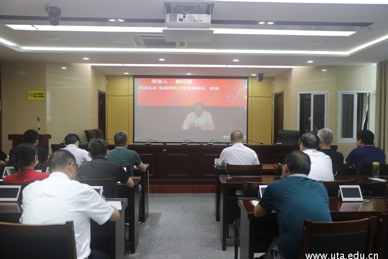 本网讯(党委宣传部通讯员 孙静)7月28日上午,省委教育工委、省教育厅举办学习贯彻习近平总书记“七一”重要讲话精神省委宣讲团宣讲报告会。省委宣讲团成员、安徽师范大学党委委员路丙辉教授作宣讲报告,省委教育工委书记钱桂仑主持。我校在图文信息中心九楼视频会议室设立分会场,党委书记李方泽,党委副书记、纪委书记郭淼,党委委员、副校长陈行,党委委员马纯、杨林国,学院中层干部,思政课教师和辅导员代表共计90余人参加会议。