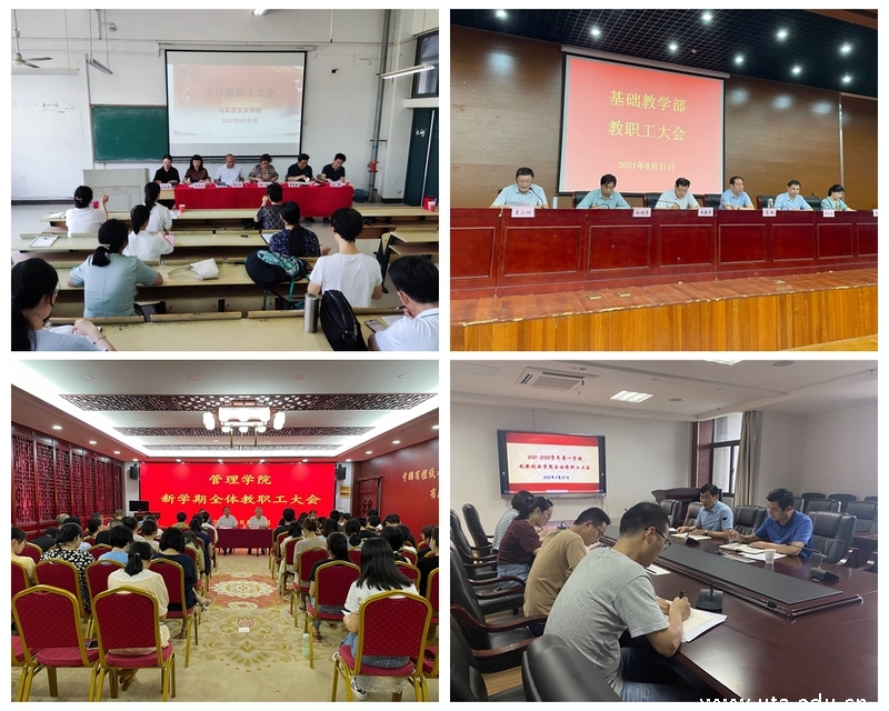 各部门、各二级学院(部)严格按照学院党委统一部署,分别于新学期学生报到前,召开了本部门、本学院教职工大会。会上,各部门、各二级学院(部)按照学院党委统一部署、要求,传达学习了省委巡视反馈等相关文件精神和学院2021年度第六次重点工作调度会精神,将上半年各项工作开展情况进行总结,并安排新学期各项教育教学工作。为加强各部门、各二级学院(部)新学期教职工大会督促、检查,确保会议效果,学院领导班子成员分别深入各自联系、分管的部门、院部,对各部门、院部新学期教职工大会进行现场督查、指导,旁听会议。党委书记李方泽、校长孙敬华先后深入马克思主义学院、基础教学部督察指导,并就做好学院各项重点工作推进落实、深化教育教学改革等提出具体指导意见和要求。各部门错峰开会,避免聚集,创新思路,加快发展。截止9月2日,学院各部门、各院部圆满成功召开了新学期教职工大会,进一步明确了新学期的奋斗目标,凝聚了人心、形成了共识,为圆满完成本学期各项任务奠定了坚实的基础。