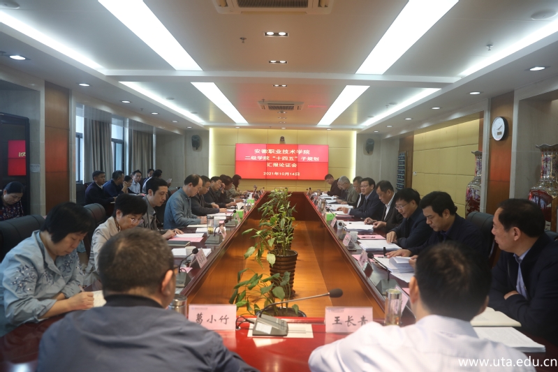 本网讯(校办通讯员 王野)10月14日下午,学院在图文信息中心九楼第一会议室召开“十四五”发展规划子规划汇报论证会。会议邀请了安徽工商职业学院院长李雪教授、安徽财贸职业学院院长刘银国教授和安徽交通职业技术学院副院长王丰胜教授等校外专家对学院“十四五”发展规划子规划进行论证。校领导班子成员孙敬华、郭淼、陈行、林葆春、马纯、杨林国,各二级学院(部)党政负责人及学院相关部门负责人参加会议。会议由党委副书记、院长孙敬华主持。