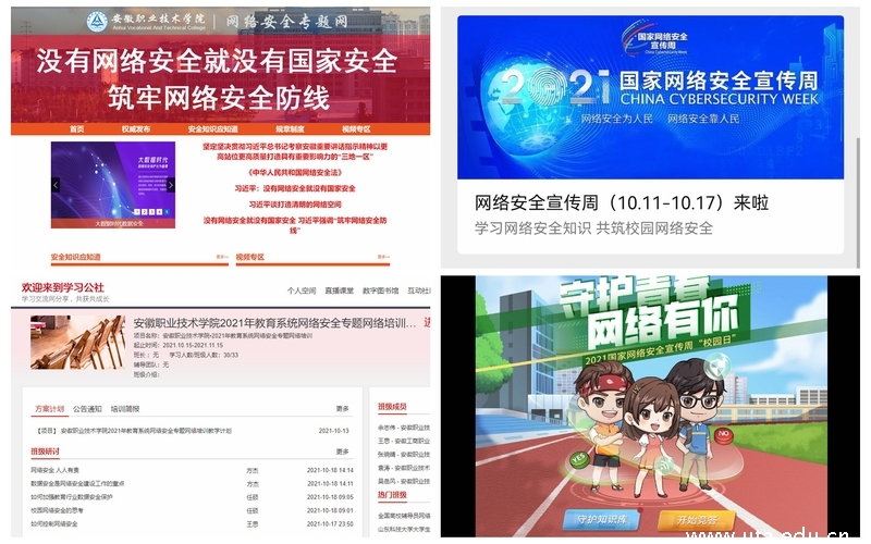 抓牢活动载体,丰富教育形式。一是用心开展线上科普活动。宣传周首日,学院就利用学院官网上线了网络安全专题网页,校园官微等新媒体平台发布习近平关于维护网络安全的相关重要论述,并围绕“防范恶意软件、加强信息管理、谨防电信诈骗、远离网络谣言”等方面,从学生生活实际出发,推送网络安全知识宣传手册。二是精心组织线下讲座培训。积极邀请辖区网安大队警官为学生开展网络安全专题辅导讲座。同时,各二级学院(部)还组织开展了形式多样的网络安全教育主题班会,通过讲述典型案例,播放自制短视频、微课堂等,开展网络安全警示教育,进一步增强广大学生网络安全防护意识等。三是组织广大学生参加全国大学生网络安全知识竞答,并联合新站区网安大队警官来学院开展“国家反诈中心”APP注册专项活动。四是开展网络信息安全员专题培训。学院在每个部门、二级学院(部)遴选了网络信息安全员,并集中开展线上专题培训,不断提高各部门网络安全意识和工作水平,从而通过网格化、分级管理,进一步筑牢学院网络安全防线。