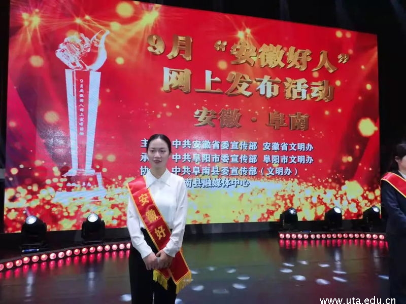 本网讯(宣传部通讯员 孙静)近日,由安徽省委宣传部、安徽省文明办主办,阜阳市委宣传部、阜阳市文明办承办的“9月‘安徽好人’网上发布活动”在安徽阜南举行,我校优秀毕业生王倩同学当选“安徽好人”。