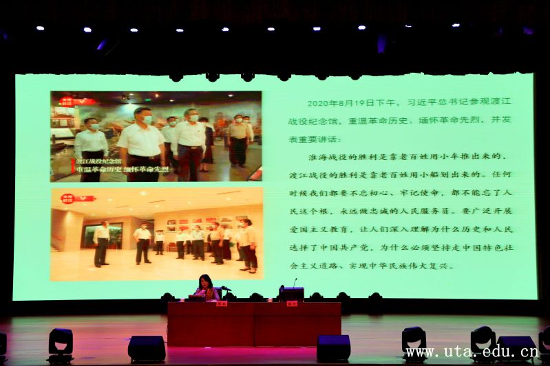 本网讯(院团委通讯员 石可)10月27日下午,“安职大讲堂”系列讲座第四讲在校大学生活动中心成功举办。渡江战役纪念馆(安徽名人馆)管理处处长程红应邀为我校师生作讲座。党委委员、副校长陈行出席并主持活动。院团委负责人、各二级学院党总支书记、团总支书记以及400余名学生代表聆听了讲座。