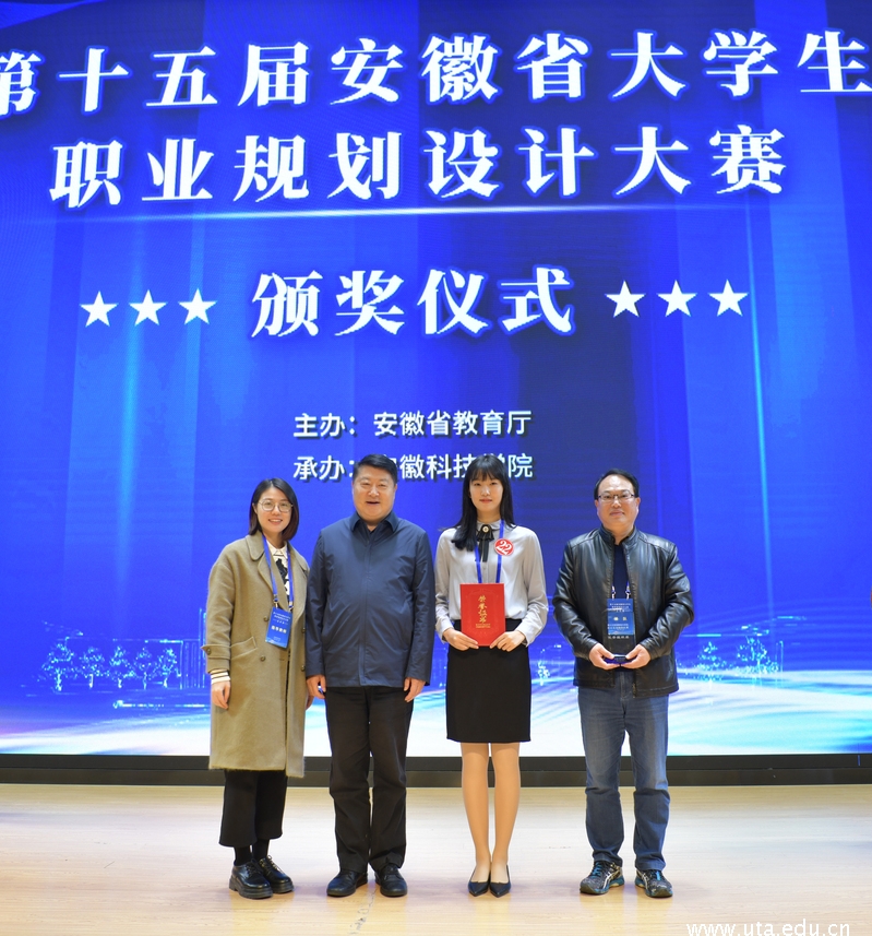 本网讯(学生处通讯员 傅峙)11月5日至7日,由安徽省教育厅主办的第十五届安徽省大学生职业规划设计大赛总决赛在安徽科技学院举行。我校财经商贸学院营销2024班张淼同学荣获高职组金奖,实现学院本项赛事成绩的历史性突破。同时,学院还荣获本届比赛优秀组织奖。