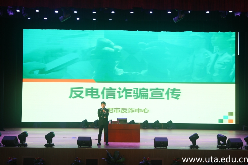 本网讯(保卫处通讯员 卫燕)为进一步筑牢防范电信网络诈骗的安全防线,全面遏制电信网络诈骗的高发态势,维护校园和谐稳定,11月10日下午,由校保卫处、学生处联合举办的校园防电信诈骗专题讲座在大学生活动中心举办,特邀合肥市公安局刑警支队五大队副大队长、合肥市反诈中心宣传组负责人杨础主讲,学院全体辅导员、班主任和各二级学院学生代表共800余人参加讲座,讲座由保卫处王胜璋老师主持。