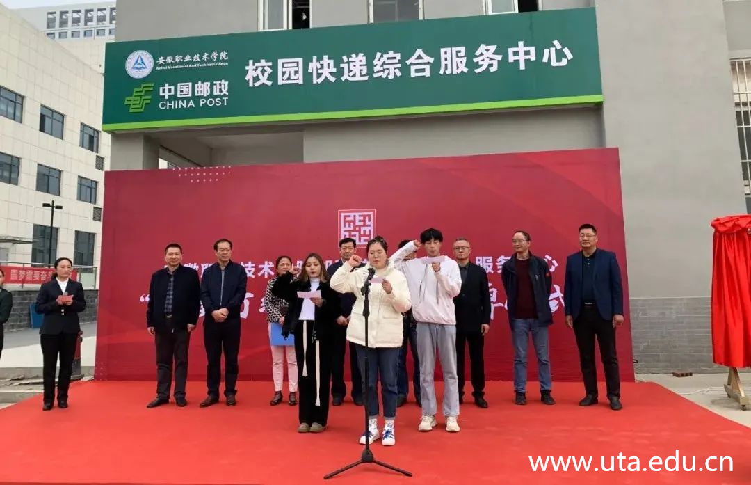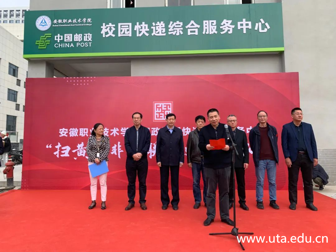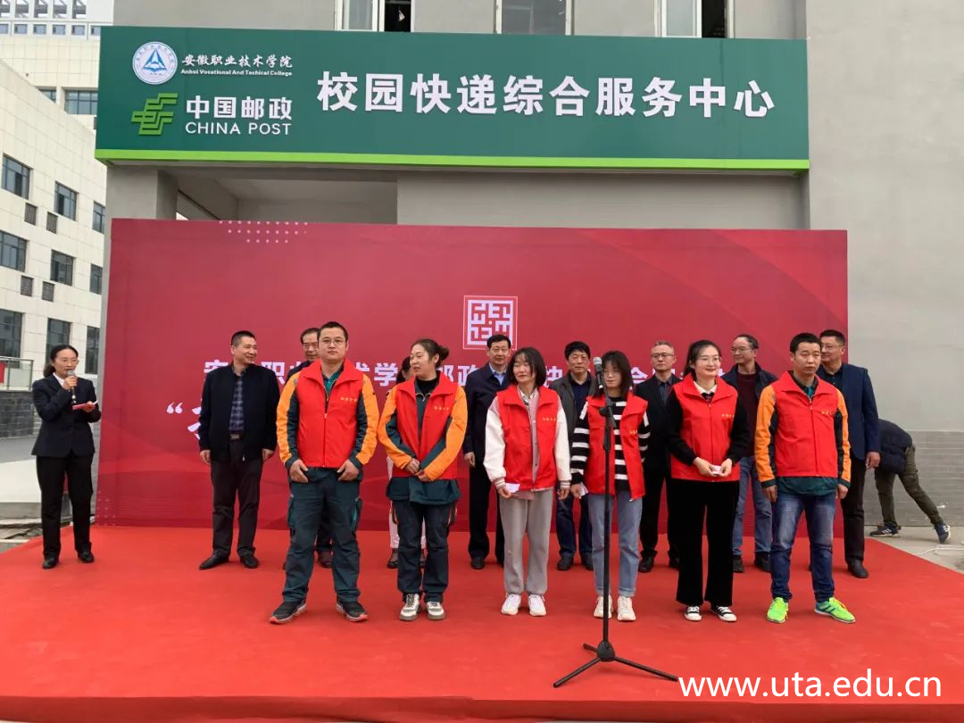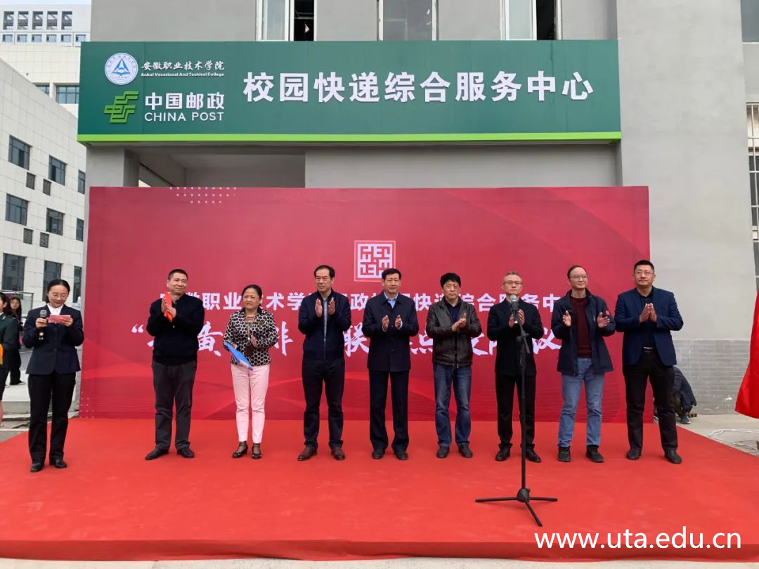 本网讯(后勤管理处通讯员 高立克)11月17日上午,合肥邮政“扫黄打非”联络点授牌仪式在我校校园快递综合服务中心举行。党委副书记、院长孙敬华,合肥市邮政管理局副局长陈宇,党委委员、基础部主任马纯,中国邮政集团有限公司合肥市分公司纪委书记、副总经理宣鸿飞,合肥新站高新区社会事业局副局长蔡建春,新站高新区文旅处处长吴发金,中国邮政集团有限公司合肥市分公司服务质量部经理方强,中国邮政合肥市城区寄递事业部总经理杨宇出席授牌仪式。
