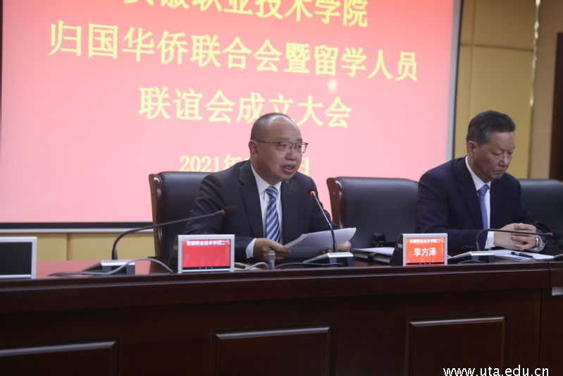 李方泽代表学院党委,对学院归国华侨联合会暨留学人员联谊会的成立表示热烈祝贺,向长期以来关心支持学院工作的省侨联、省委教育工委领导表示衷心的感谢。他指出,学院在全省高职院校中率先成立侨留联,是党委贯彻落实中央和省委统战工作相关文件精神的具体实践;是密切与归侨侨眷、留学人员联系,凝聚智慧力量的必然要求;是深入实施人才强校战略的重要举措。