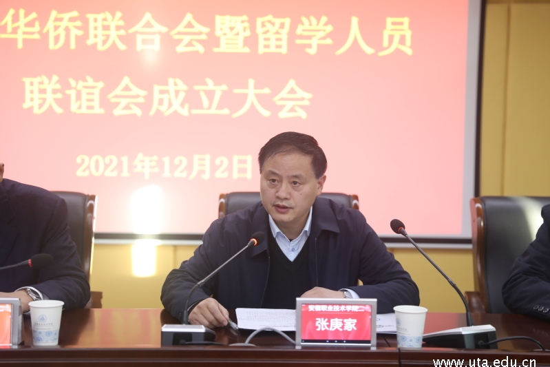 会上,张庚家代表省委教育工委、省教育厅向学院侨留联的成立表示热烈祝贺,并对学院近年来党建和各项事业发展取得的成绩以及良好的发展态势给予充分肯定。他说,这些成绩的取得,凝聚了包括归侨、侨眷和留学人员在内的全体教职工的辛勤付出。他对学院侨留联提出三点要求:一是要坚持政治性,在思想认同上画好“同心圆”;二是要坚持先进性,在创新创造上当好“生力军”;三是要坚持群众性,在联谊交友上壮大“朋友圈”,把侨留联建设成值得信赖的侨胞之家和留学生之家。最后,他希望学院侨留联要充分发挥好作为党和政府联系侨胞侨眷和留学人员的桥梁纽带作用,着力加强政治引领,壮大会员队伍,做好联系服务,增进团结合作,努力助力学院实现高质量、跨越式发展。