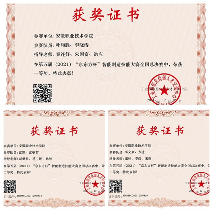 本网讯(机电工程学院通讯员 秦连好)11月30日,由工业和信息化部人才交流中心主办、BOE(京东方)承办的第五届“京东方杯”智能制造技能大赛全国总决赛落下帷幕,12月7日获奖名单公布,我校机电工程学院叶和胜、李晓涛、李文豪、方进、张凯、张敬哲六位学生组成的团队历经海选、初赛、决赛,最终脱颖而出,喜获全国总决赛一等奖1个、二等奖2个。