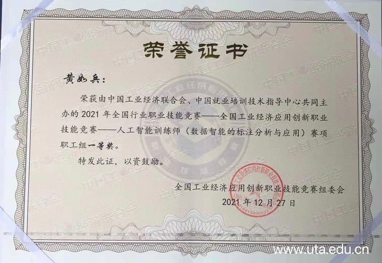 本网讯(信息工程学院通讯员 裴明丽)12月26日,全国行业职业技能竞赛——全国工业经济应用创新职业技能竞赛人工智能训练师大赛竞赛总决赛顺利落下帷幕。我校教师黄如兵、毕佳佳,学生程纪飞、吴岳、陈跃新、王进贤凭借扎实的专业知识与技能,荣获职工组全国一等奖、二等奖,学生组荣获全国二等奖、三等奖,学院获得优秀组织奖。