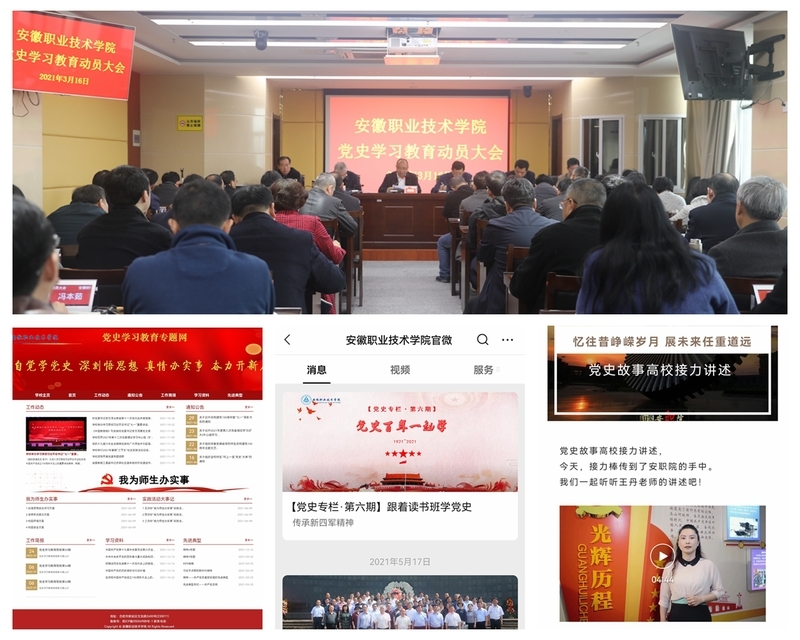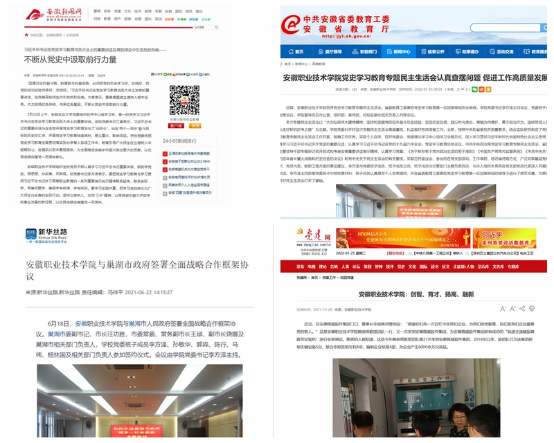 党史学习教育开展以来,学院党委聚焦形势任务,强化责任担当,奋力工作创新,学院各项事业发展呈现出新的气象:学院思想政治学习得到新加强,基层党组织建设取得新突破,学院发展亮出新目标,教育教学水平得到新提升,师资队伍建设跃上新台阶,科创服务能力得到新增强,综合办学条件得到新改善,师生精神面貌实现新转变。中宣部党建网、新华网、中国教育报、《安徽日报》、安徽新闻网、中安教育网等媒体,先后181次对学院党史学习教育、教育教学改革及事业发展等方面进行了宣传报道,取得了各界广泛关注和良好社会影响。