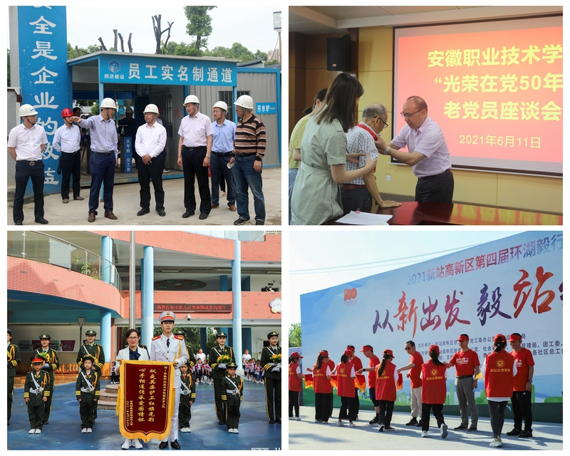 紧紧围绕学懂弄通做实党的创新理论,以五个“学”为抓手,辐射推动学院理论武装工作深入开展。一是扎实推进中心组领学。组织召开党委理论学习中心组(扩大)学习会14次,党委班子成员和中层干部研讨交流49人次,听取高端辅导报告11场,举办专题读书班和安职大讲堂9期,党委主要负责人先后11次到地市、高校、企业等开展宣讲,发挥“关键少数”的学习表率作用;二是开展专题培训学。创办“党建读书会”,着力打造“书香党建”品牌工程;先后举办习近平总书记“七一”重要讲话精神专题辅导报告、十九届六中全会精神专题辅导报告、安职大讲堂等活动,实现党员师生学习教育全覆盖;三是开展宣讲促进学。成立党史学习教育宣讲团,面向学院、社区、企业开展“行走党课”、大学生暑期“三下乡”党史宣讲等活动,推动党史学习教育多点开花、落地生效;四是运用红色资源现场学。面向青年学生开展“七一”升旗仪式活动,组织党员干部赴皖南泾县、安徽渡江战役纪念馆等爱国主义教育基地开展参观践学活动;五是融入教育教学实践学。组织师生开展“同上‘四史’思政大课”、党史知识竞赛等特色活动百余场,参与人数达2万多人次,推动党史学习教育入心践行。