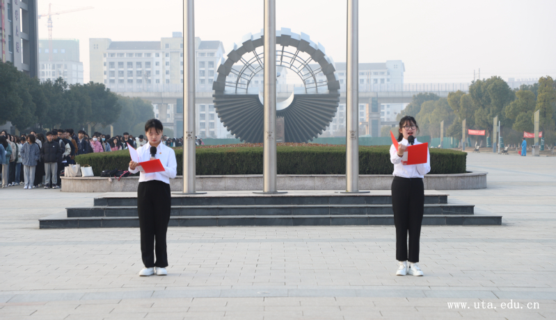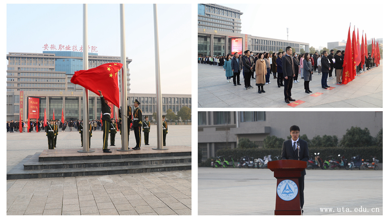 升旗礼毕后,学院团学组织学生代表于欣作国旗下的演讲。他用慷慨激昂的语言,回顾了一年来广大同学们切身感受到的校园变化,展现了安职青年学子的自信豪情,号召广大青年学子积极响应学院“文明用餐在食堂,不爱网游爱操场;背着书包进课堂,不看手机看黑板”的倡导,树立良好的学风校风,营造浓厚的学习氛围,以实际行动为学院事业发展贡献青春力量。