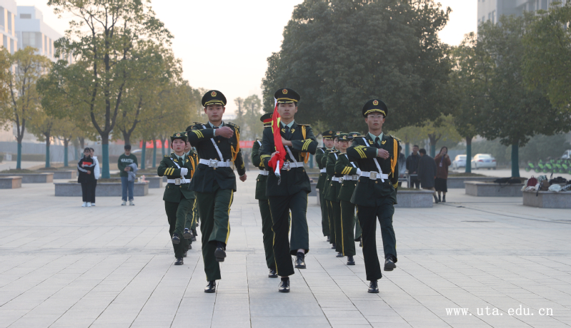 伴随着旭日东升,霞光盈空,英姿飒爽的国旗护卫队迈着整齐稳健的步伐,护送国旗到达广场中间。“升国旗,奏唱国歌!”升旗手扬起国旗,现场师生高唱国歌,全体行注目礼。鲜艳的五星红旗冉冉升起,跃动在广场上空,校园里路过的师生们纷纷停下脚步凝神注目。