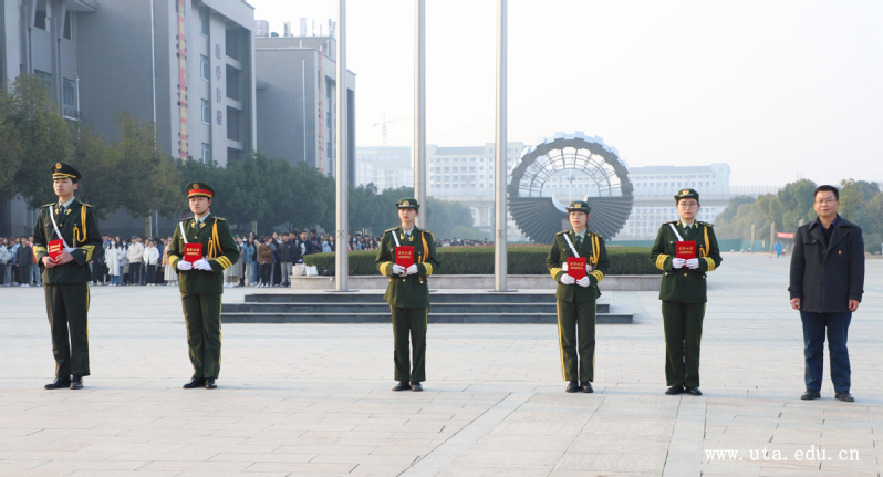 活动中还表彰了2021年度升旗活动中不畏风雨、艰苦训练的国旗班护旗队员,肯定了他们在学院各项活动中的积极贡献,宣岩松为获表彰护旗队员颁发了荣誉证书。