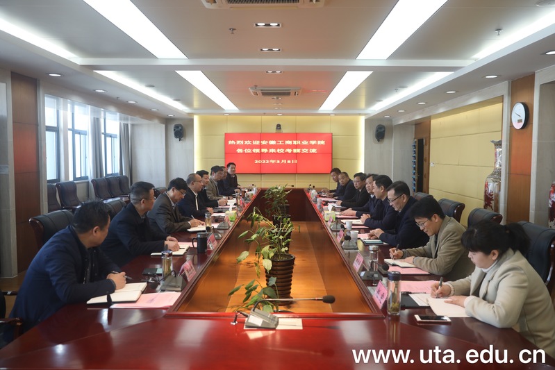 本网讯(院办通讯员 王野)3月8日上午,安徽工商职业学院党委副书记、院长李雪一行来我校考察交流。党委书记李方泽,党委副书记、院长孙敬华,党委委员、副院长张智清,党委委员、副院长杨林国,党委委员、副院长宣岩松,党委委员、体育健康学院院长马纯及相关部门负责人接待了客人一行。会议由孙敬华主持。