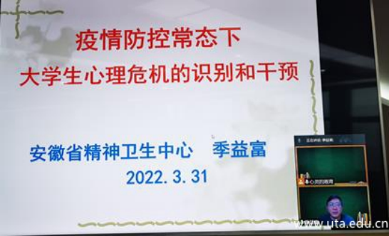 心平气和性开朗,严于律己贵有章。新冠肺炎疫情不仅威胁着身体健康,也会影响着心理健康。及时加强心理疏导,做好人文关怀,是打赢这场疫情防控阻击战的重要一环。3月31日,学院与安徽省精神卫生中心举行医校合作签约仪式,双方就大学生心理发展指导与研究等方面达成合作共识,表示将持续推进校、医长期稳定的合作关系,为学院开展学生心理危机预防、干预工作提供了坚实的专业助力。各二级学院纷纷开展与学生谈心交流活动,以“心理微课堂”等形式为同学们讲解疫情防护和心理防护相关知识,指导他们用科学的方法消除恐慌、不安的心理。在各方面共同努力下,学院全方位、立体化、全覆盖的心理干预和疏导机制正在形成。